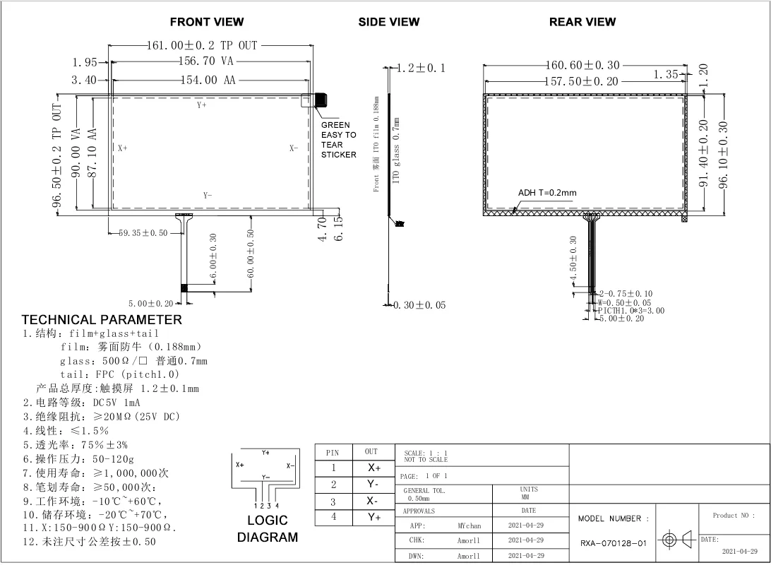 Spesifikasi modul layar sentuh tianfu