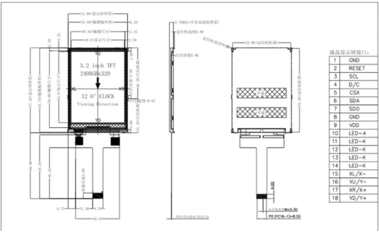 Modul layar sentuh TFT kecil IPS suhu lebar 3,2 inci dilengkapi antarmuka serial SPI 4 kabel, sehingga mudah diintegrasikan ke dalam berbagai desain. Dimensinya yang ringkas yaitu 54,00×77,40×3,70 mm (L×L×D) ideal untuk perangkat dengan ruang terbatas, sedangkan area tampilan aktif 48,60×64,80 mm menyeimbangkan ukuran layar dan portabilitas, menjadikannya pilihan ideal untuk panel kontrol industri, penguji genggam, dan elektronik konsumen.